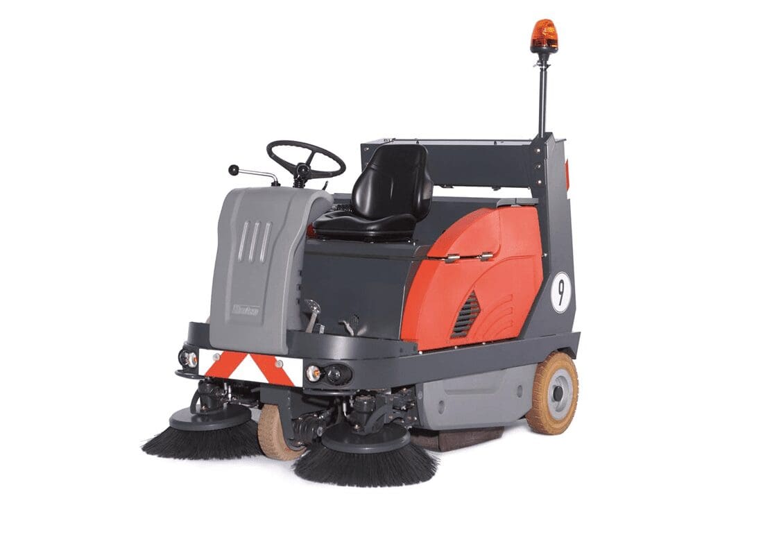 Powerful, intelligent and durable. By choosing the Sweepmaster 1200RH, you are making a decisive step towards improving performance and efficiency with regard to the cleaning of industrial and commercial premises. Providing an area coverage of up to 10,300 m2/h, the Sweepmaster model is firmly positioned in the top category of ride-on sweepers. It is perfectly suited for the quick and particularly efficient dust-free sweeping of warehouses and production plants as well as hard surfaced outdoor facilities. Capable of overcoming steep slopes, they have sufficient power reserves to enable their deployment for cleaning multi-storey car parks ramps